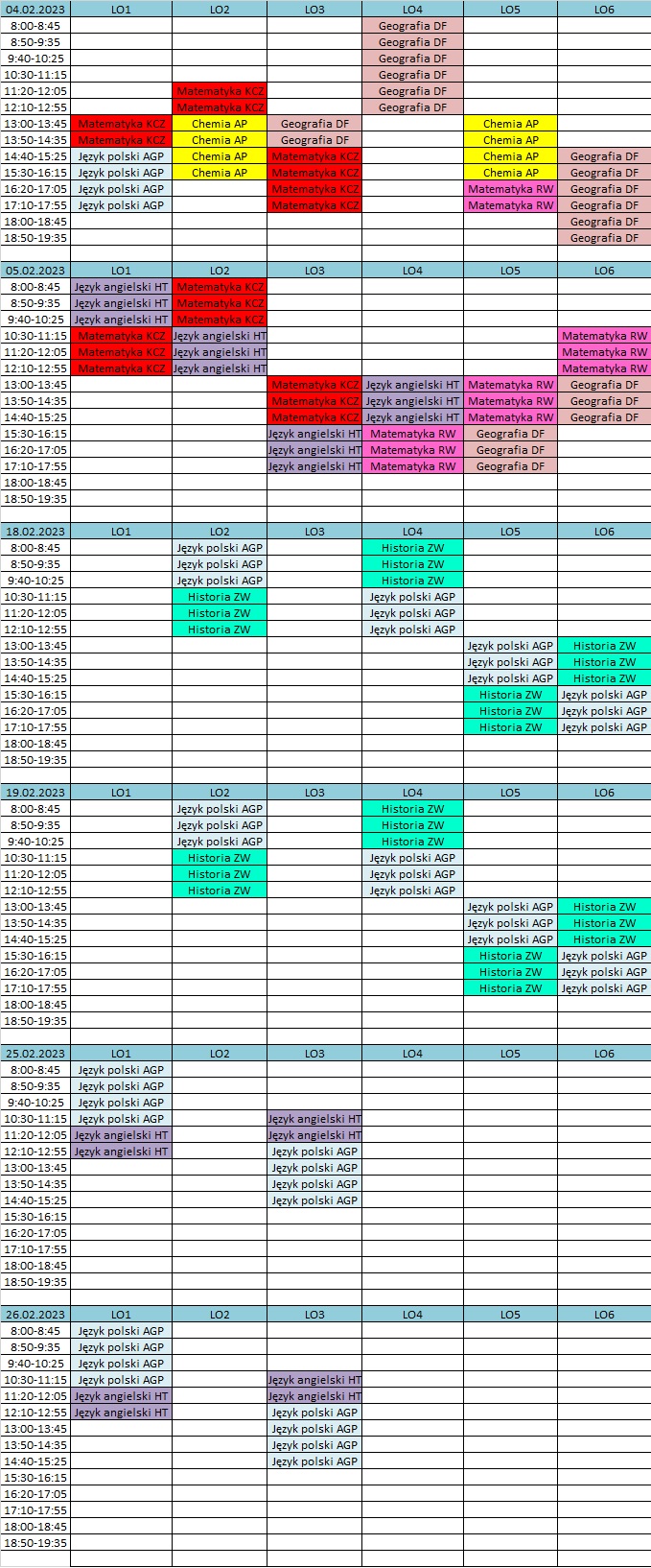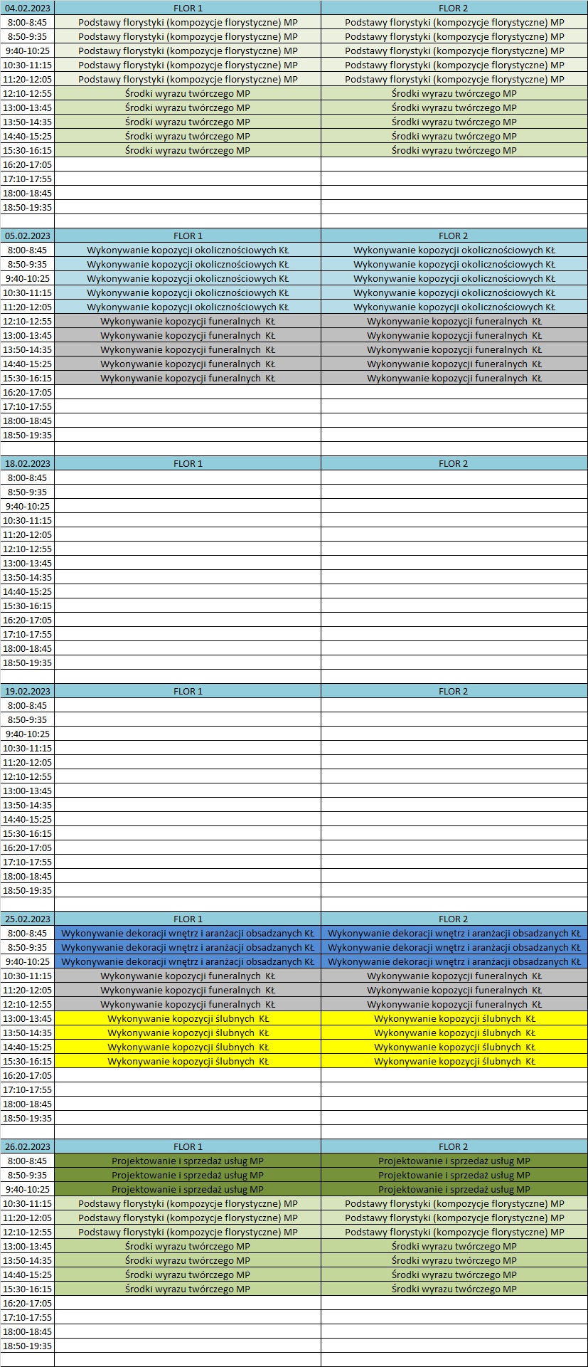 PLAN ZAJĘĆ LUTY