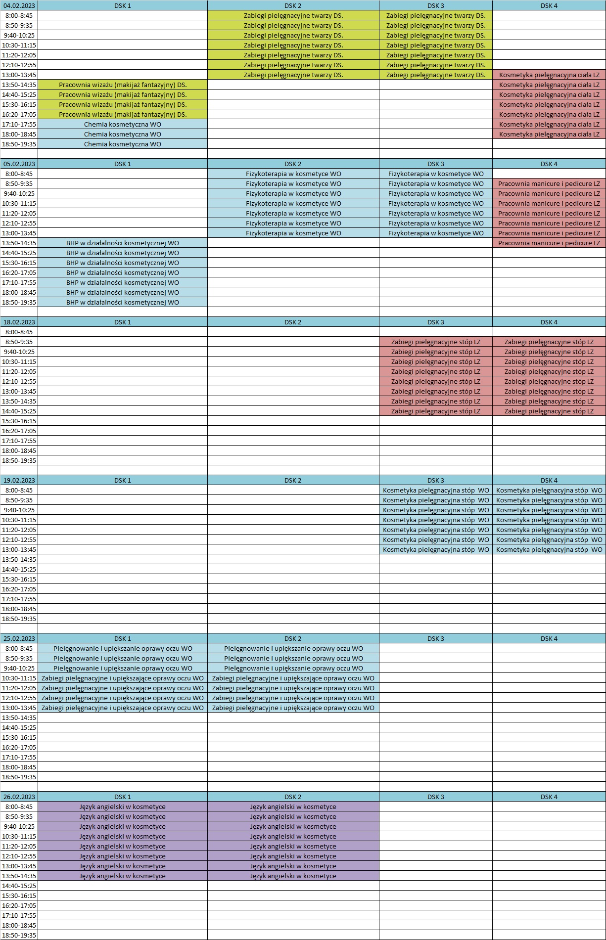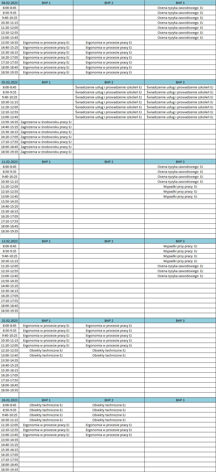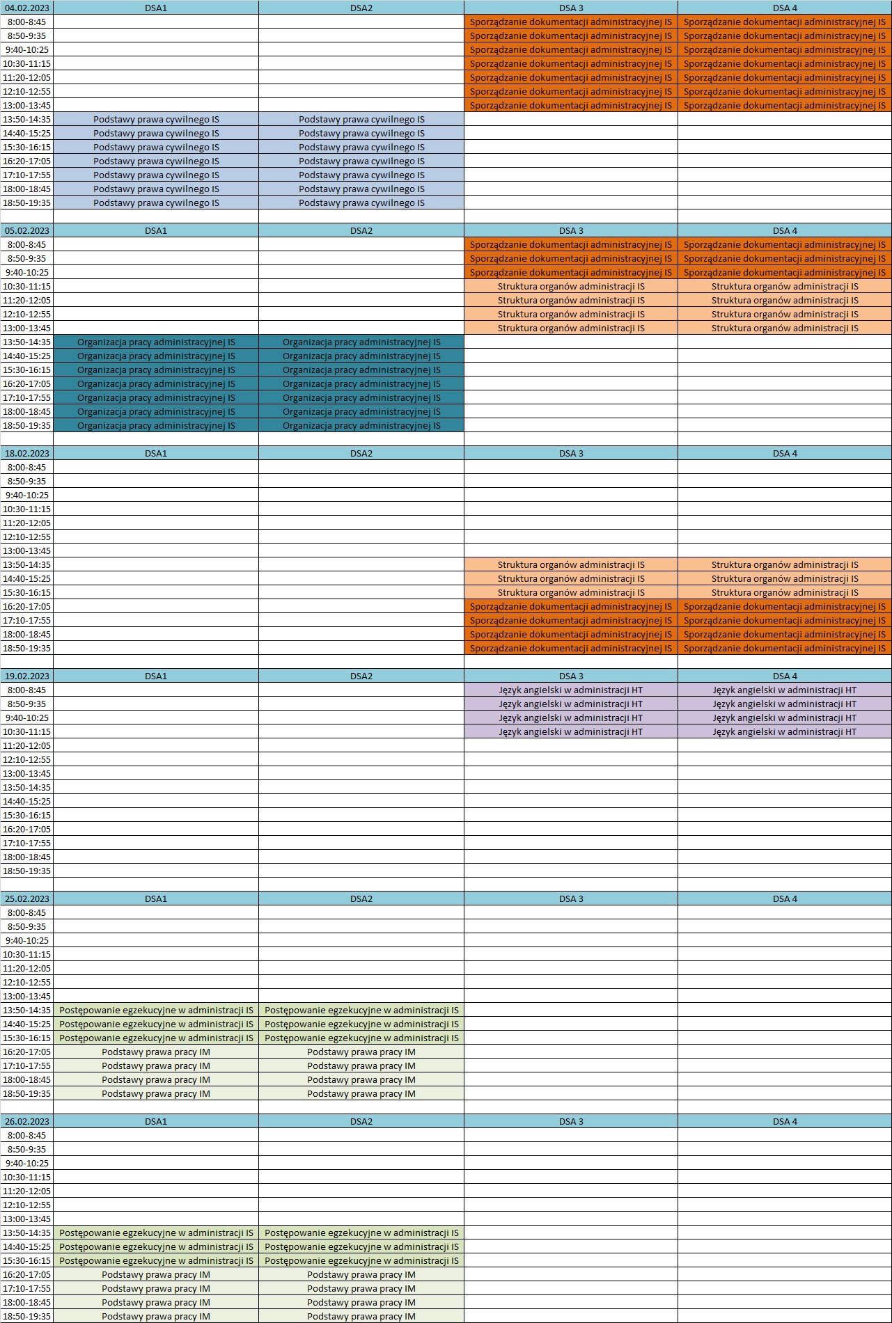 Plan może ulec zmianie, dlatego zalecane jest sprawdzenie planu w tygodniu poprzedzającym dany zjazd. W przypadku niejasności prosmy o kontakt z naszym Sekretariatem.